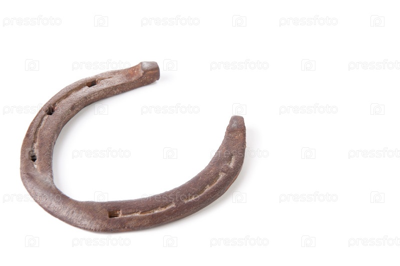 Старая ржавая подкова на белом фоне