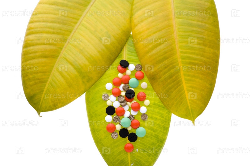 Объект на белом - Медицинские таблетки на листе