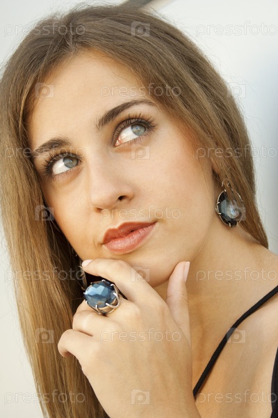 Девушка с кольцом на пальце и серьгами