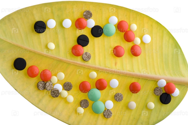 Объект на белом - Медицинские таблетки на листе