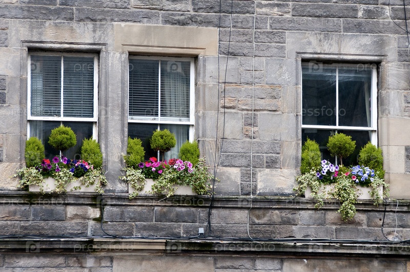 Окна, украшенные цветами. Эдинбург. Шотландия