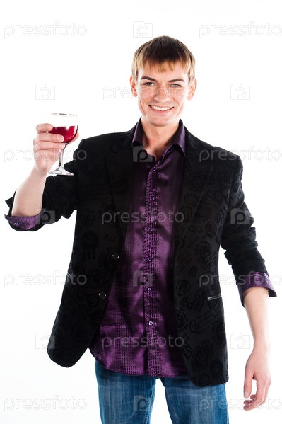 Портрет мужчины среднего возраста с бокалом вина на белом фоне