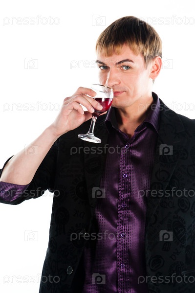 Портрет мужчины среднего возраста с бокалом вина на белом фоне