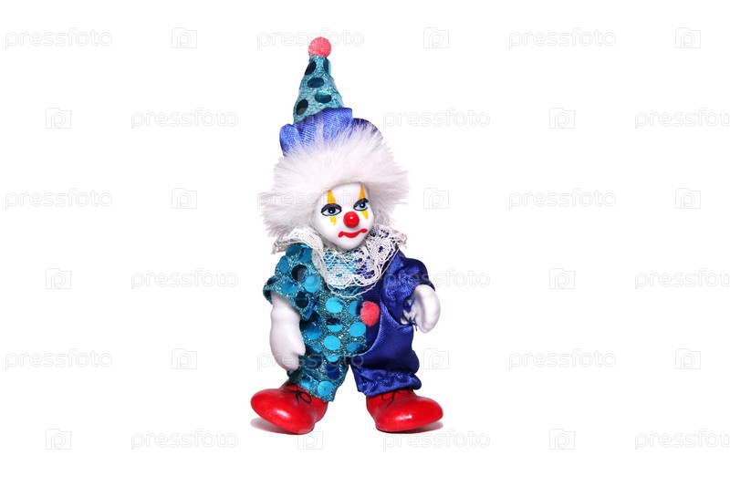Фарфоровый клоун на белом фоне