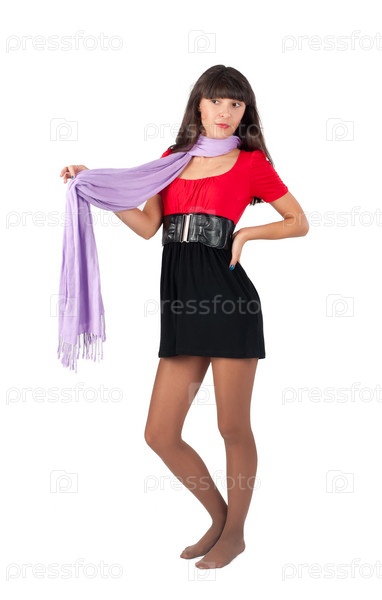 Молодая привлекательная женщина с платком. Изолирована на белом фоне
