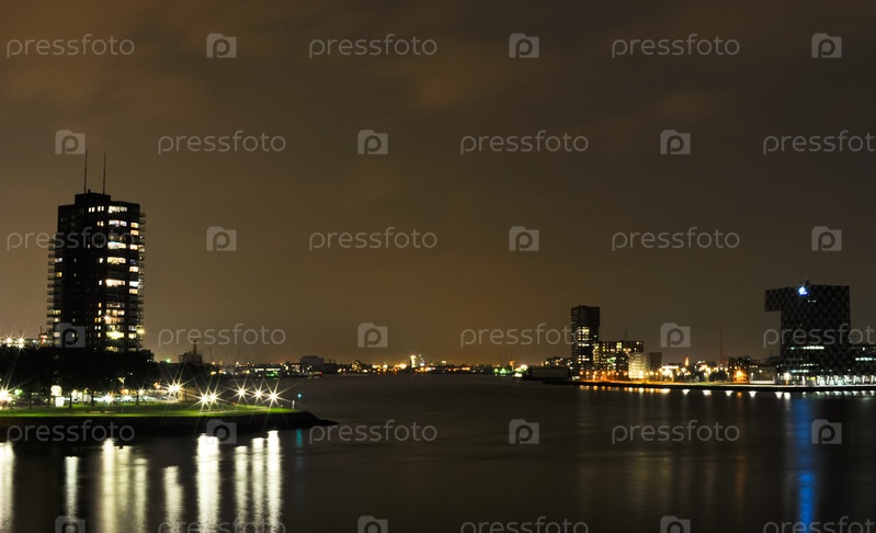 Роттердам, ночь, вид с реки Маас