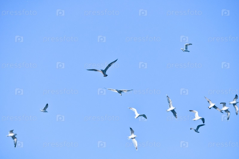 Стая птиц в голубом небе