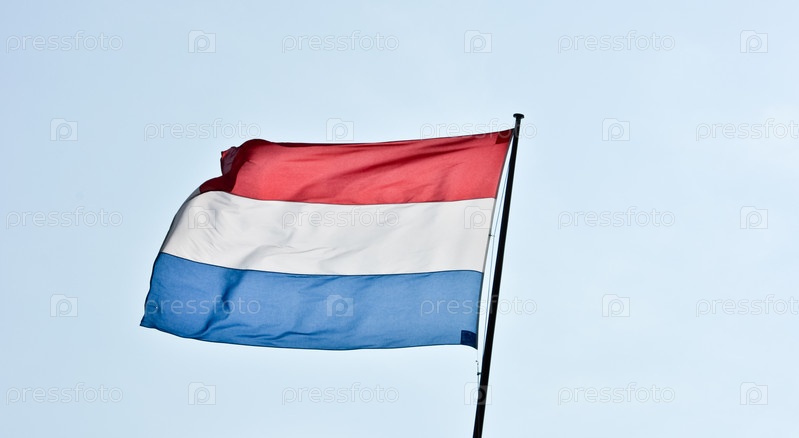 Голландский флаг на фоне голубого неба
