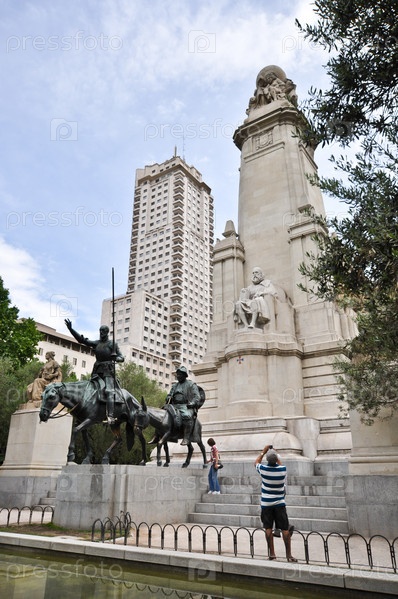 Памятник Сервантесу и герою его романа Дон Кихоту на Плаза де Испанья, Мадрид, Испания