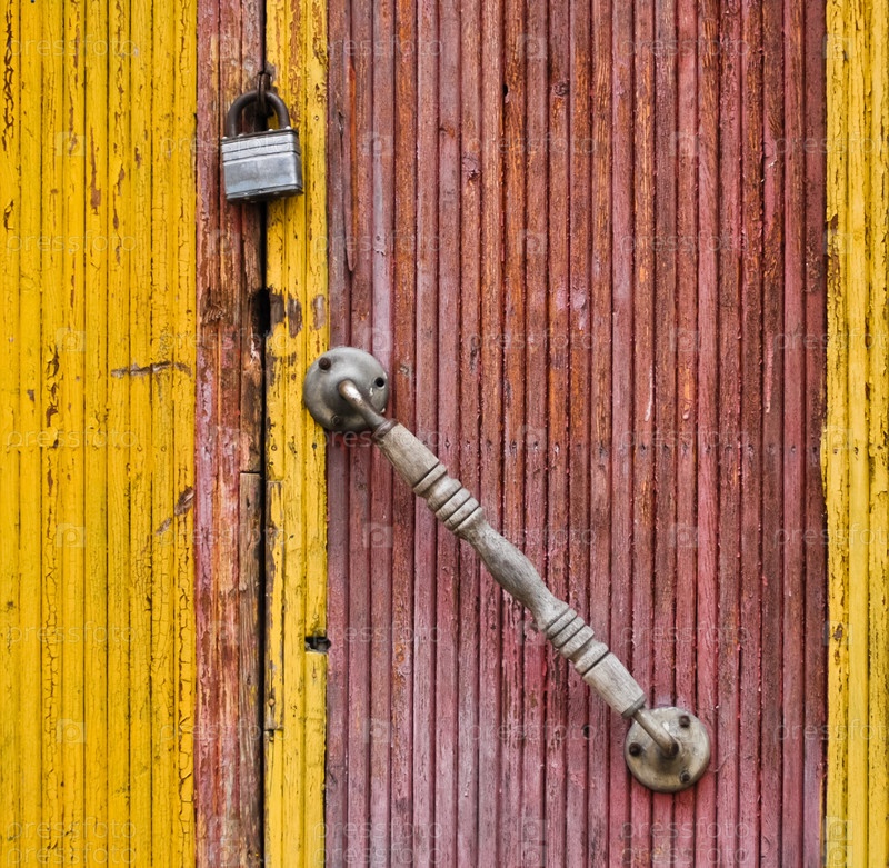 Старая деревянная дверь на замке в заброшенном здании