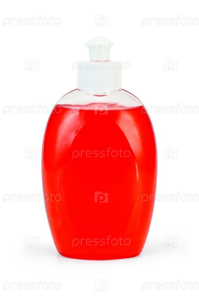 Бутылка красного жидкого мыла изолировано на белом фоне,