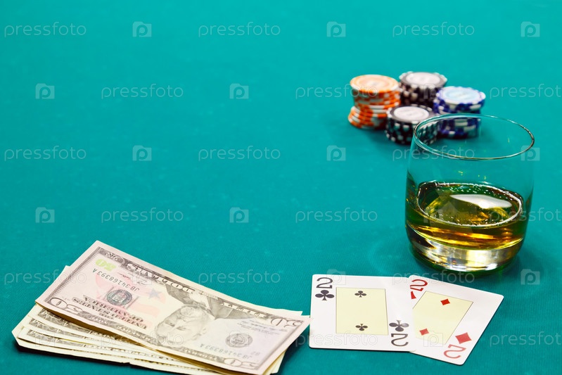 Спиртной напиток на игральном столе в казино