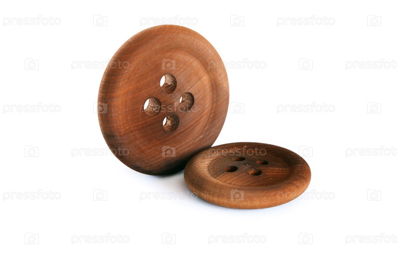 Две коричневые деревянные пуговицы на белом фоне