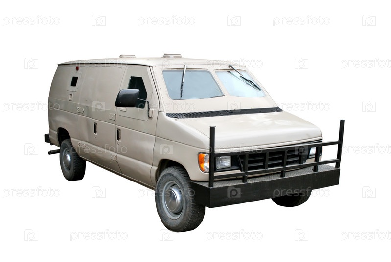 Бежевый бронированный автомобиль, изолированный на белом фоне