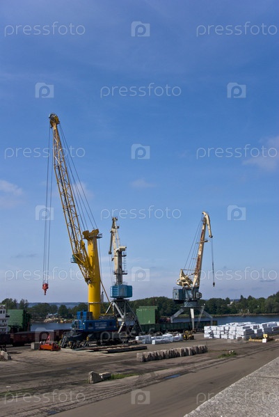 Три грузовых кранв в порту