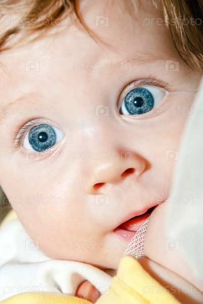 Лицо красивого младенца с голубыми глазами крупным планом
