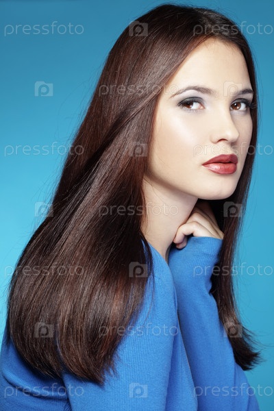 Портрет молодой красивой женщины с длинными блестящими волосами
