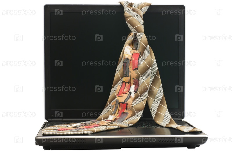 Стильный галстук на мониторе открытого и выключенного ноутбука