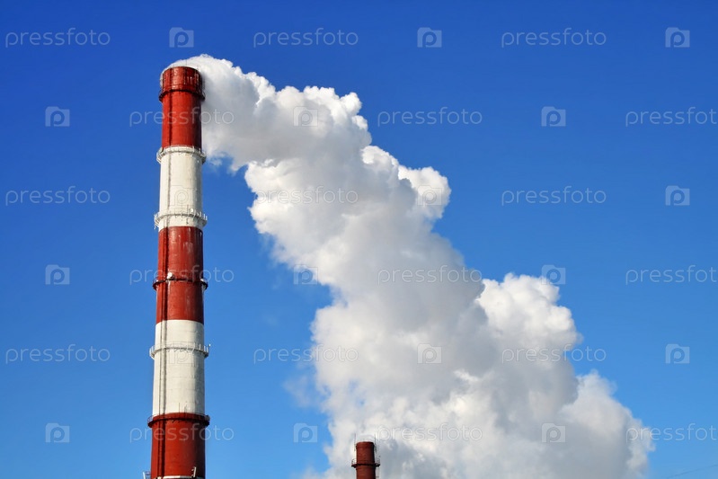 Фабричная труба на фоне голубого неба
