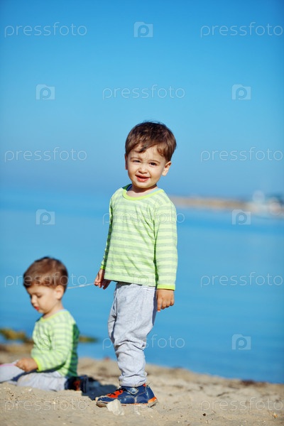 Дети играют на пляже летом