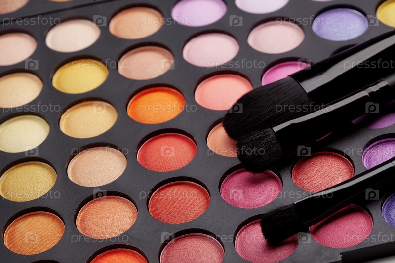 Красочная палитра для макияжа глаз и кисти крупным планом