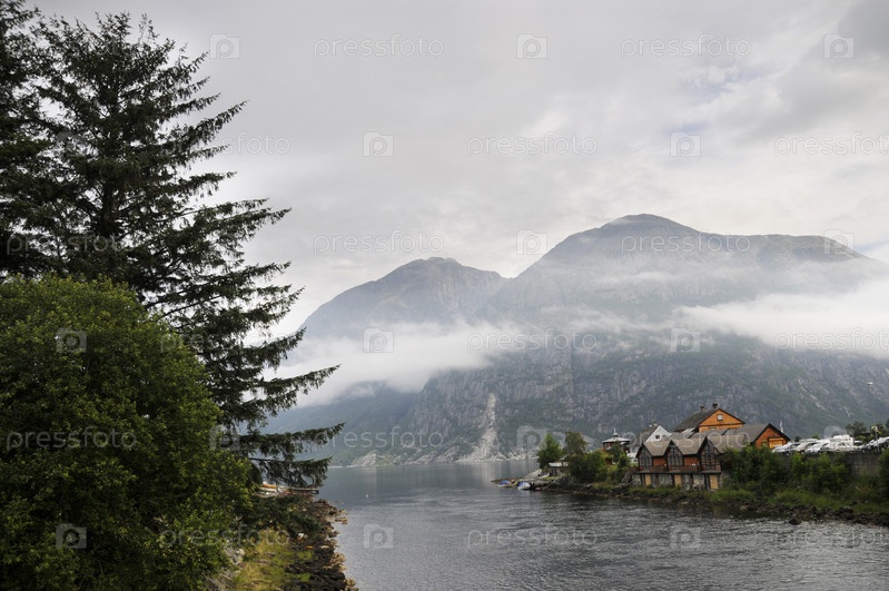 Туман над тихим маленьким норвежским городком