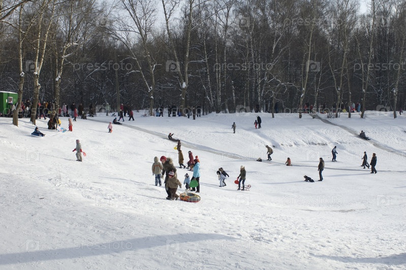 Русский лес Люди в зимнем парке Москвы