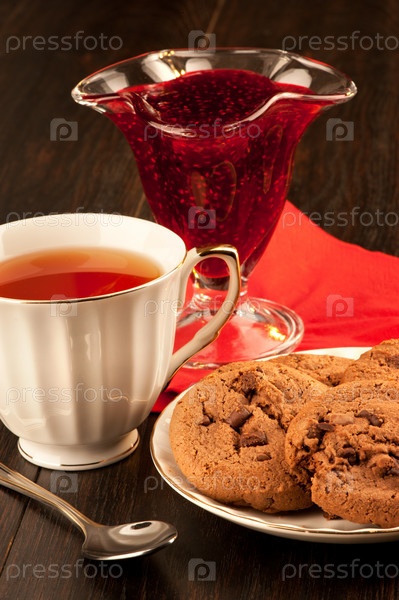 Шоколадное печенье и чашка чая