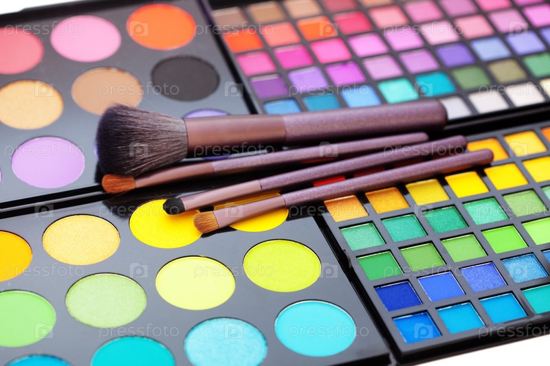 Красочная палитра для макияжа глаз и кисти крупным планом