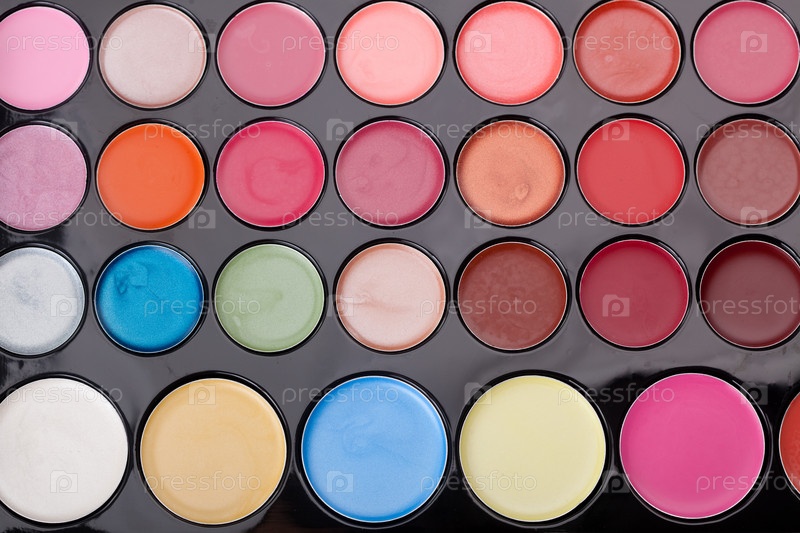 Красочная палитра для макияжа губ крупным планом