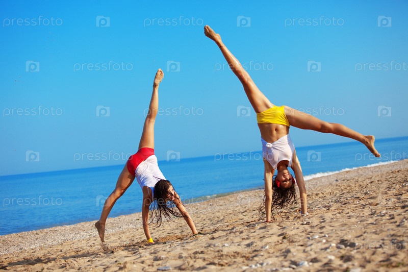 Красивые девушки с удовольствием отдыхают на пляже