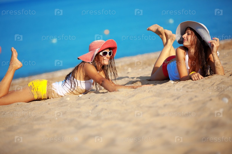 Красивые девушки с удовольствием отдыхают на пляже