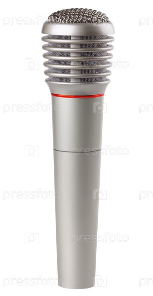 Металлический микрофон, изолированный на белом фоне