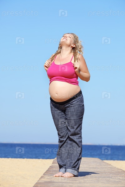 Портрет красивой беременной женщины на пляже