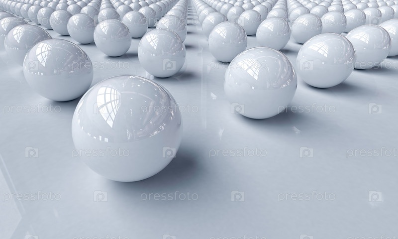Белые шарики на светлом фоне с отражениями