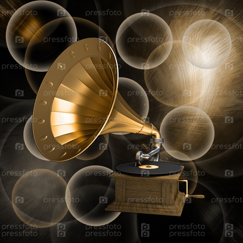 Золотой граммофон на старом фоне