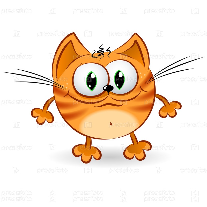 Счастливый мультипликационный рыжий кот. Иллюстрация на белом фоне для дизайна