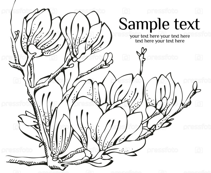 Весенний дизайн открытки с нарисованной от руки магнолией