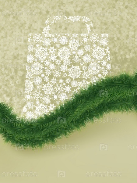 Пакет для покупок из снежинок на золотом элегантном фоне