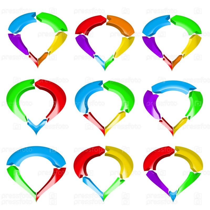 Набор различных абстрактных стрелок, собранных в геометрические фигуры на белом фоне