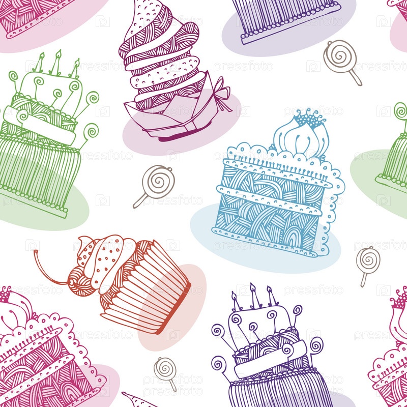 Векторный фон с нарисованными от руки сладостями и кексами