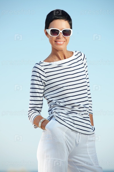 Женщина среднего возраста отдыхает на пляже