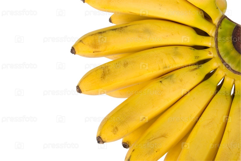 Связка мелких бананов, изолированная на белом фоне