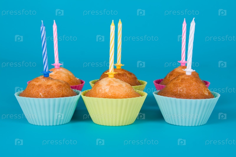 Праздничные кексы со свечами на градиентном фоне