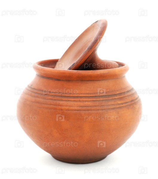 Глиняный горшок с крышкой, изолированный на белом фоне