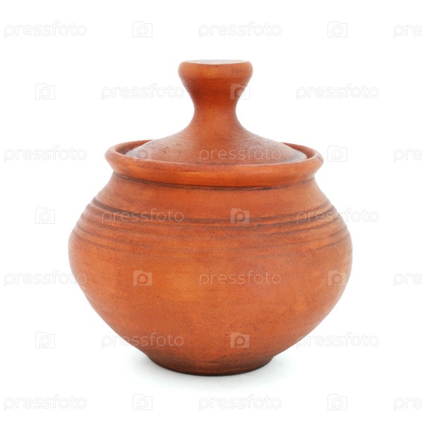Глиняный горшок с крышкой, изолированный на белом фоне