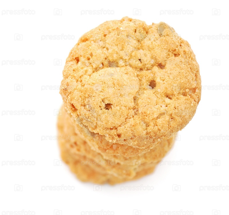 Стопка овсяного печенья, изолированная на белом фоне, вид сверху