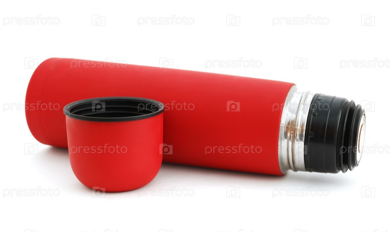 Красный термос, изолированный на белом фоне