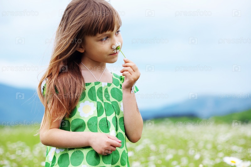 Милая девочка на ромашковом поле