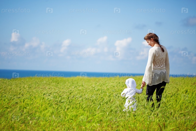 Мать с ребенком на ромашковом поле